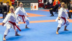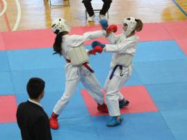Por la tarde fue el turno de las chicas, se inició con la categoría de Kata cadete donde Laia Ferrer y Laura Naud pudieron realizar 3 rondas. María Fernández, por su parte no tuvo la suficiente suerte para pasar la primera ronda. Teresa López en Kata sénior perdió por un ajustado 3-2, realizando una muy buena ejecución. En la modalidad de kumite, nos representaban Laura Naud, Ainhoa Zambrano y María Fernández en la categoría cadete. Las tres hicieron un trabajo excelente, donde destacó María Fernández que tras pasar varias rondas acabo consiguiendo un merecido cuarto puesto. Por otro lado teníamos a las sénior, Cristina Fernández y Naiara Moreno, Cristina realizó 3 combates muy bien trabajados mientras que Naiara consiguió la medalla de bronce en la categoría Kumite senior femenino -55kg, después de haber realizado varios combates excelentes.