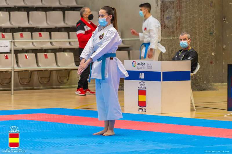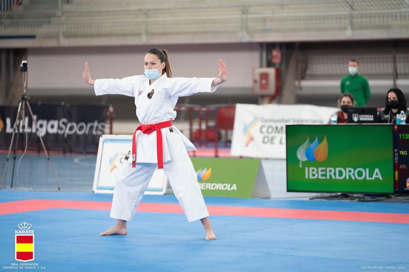 Seguidamente en la Categoria sénior de Kata, Teresa López realiza 3 katas, donde pierde en semifinales por una ajustada nota.