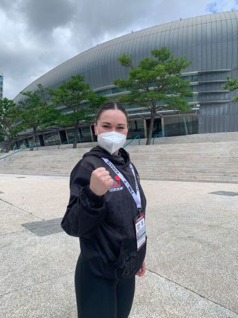 Compitió en Kata individual, haciendo 3 magníficas rondas consiguiendo llegar a semifinales y quedándose a los pelos de pasar a la lucha de las medallas.