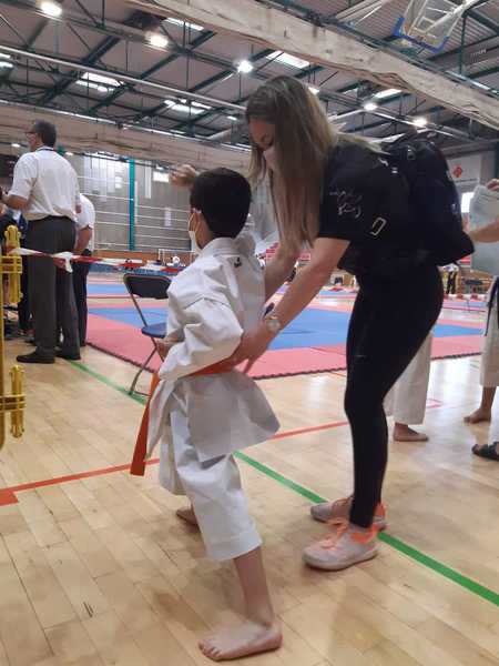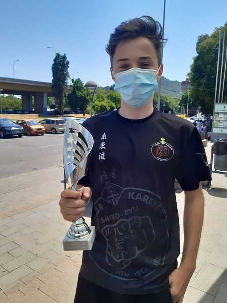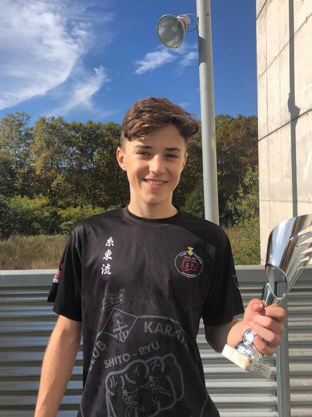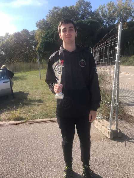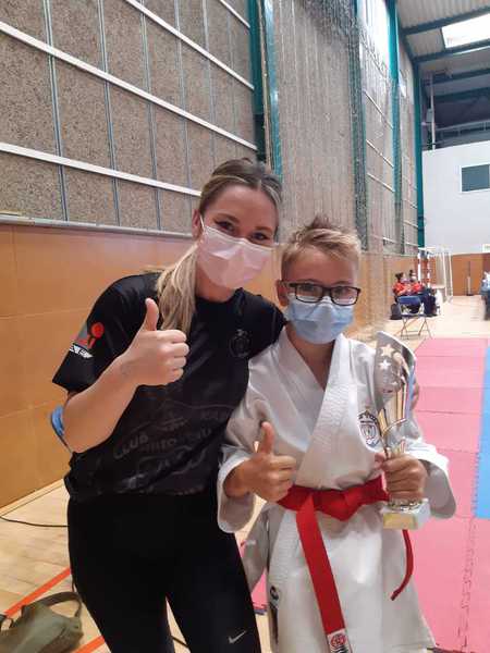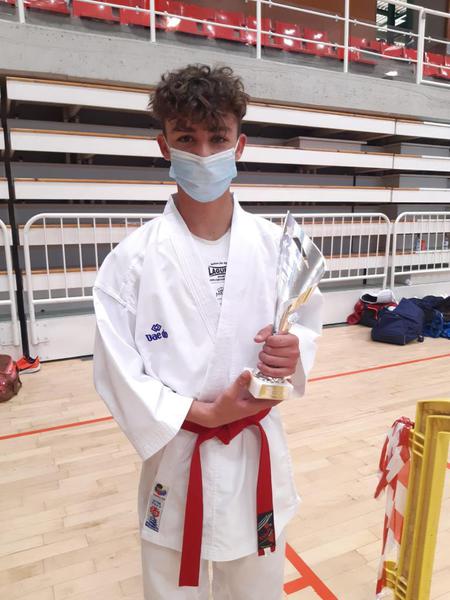 Nuestro competidor cadete, Axel Herrera realiza una muy buena competición. Tras quedarse por poco fuera de los 4 primeros en la 1a Ronda de Kata, gana el 1r combate en la categoría cadete -52Kg 5 - 0.