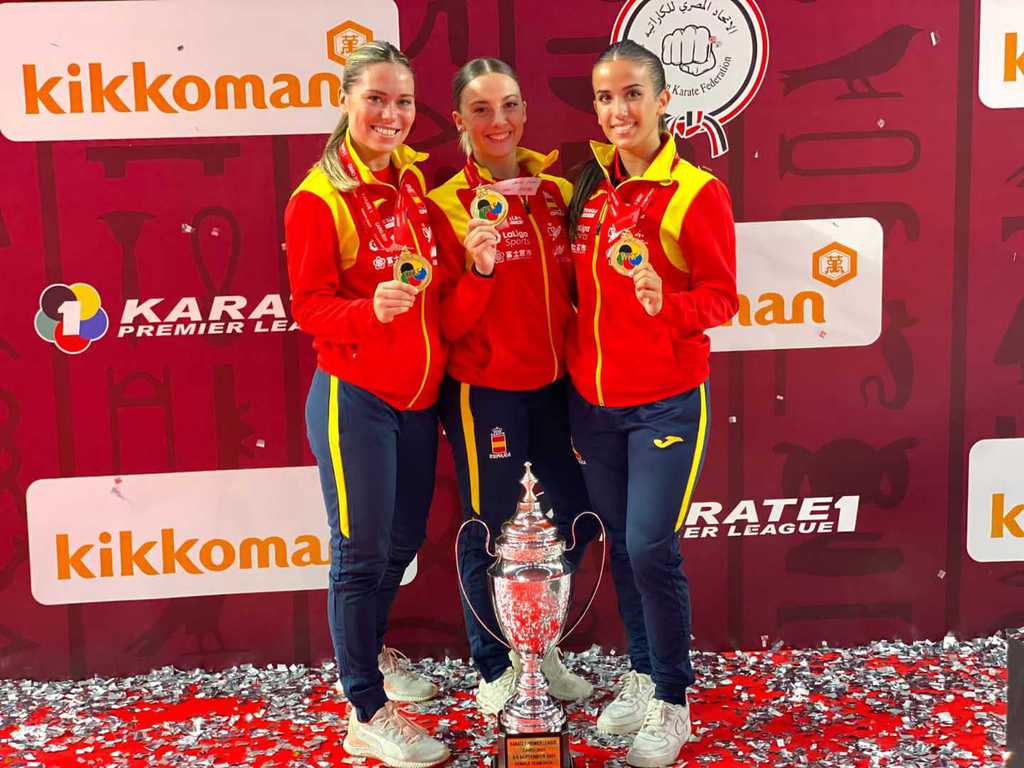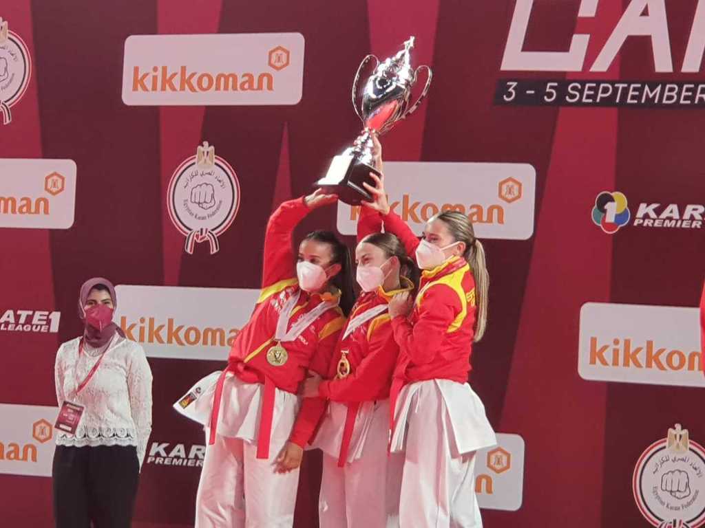 María López junto a Raquel Roy y Lidia Rodríguez, consiguen la medalla de ORO en la Premier League de El Cairo en Kata Equipo.